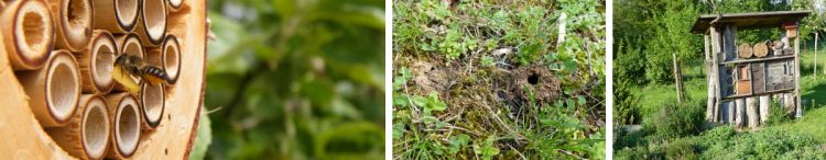Auf Streuobstwiesen finden viele bedrohte Wildbienenarten dagegen sehr gute Orte zum Nisten und als Unterschlupf. 70 Arten sind bis heute auf ihnen nachgewiesen. Je nach Art legen die Bienen ihre Brutzellen unter anderem in lehmig-sandigen Boden, in Blütenstängeln oder in Totholz an. Auch Nahrung finden sie reichlich, etwa an den Blüten von Wildpflanzen und Obstbäumen.